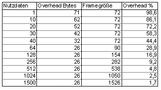 min. 44 Bytes, max. 1498 Bytes Daten |