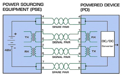 Die Technologie von Power over Ethernet erlaubt es kleinere Netzwerkgeräte, wie z.B. IP-Telefone, Accesspoints, Netzwerkameras etc., ohne eine externe Stromquelle zu betreiben. Die Idee der Stromversorgung über die Netzwerkleitung ist jedoch schon älter, nur gab es bislang keinen gültigen Standard, so daß verschiedene Hersteller eigene Lösungen entwickelten. Dadurch war die Gefahr groß, daß man aus Versehen inkompatible Komponenten durch das Anschließen beschädigt. Im IEEE 802.3af wird zwischen 2 Kernkomponenten unterschieden.