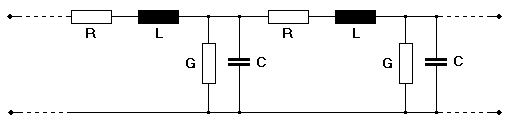 Damit ist für ω = R/L die Wellenzahl β nicht mehr genau proportional zu ω, sondern etwas größer. Die Phasengeschwindigkeit ω/β wird frequenzabhängig kleiner, d.h. wir haben "Dispersion"; Signale werden verzerrt übertragen. Auch Z ist dann frequenzabhängig und wird für kleine Frequenzen größer. Für hohe Frequenzen verschwindet die Dispersion.