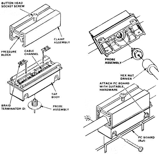 Der Transceiver im MAU wird über einen TAP angeschlossen, bei dem Mittelleiter und Schirm kontaktiert werden, ohne das Kabel - und damit den Datenfluß auf dem Netz - zu unterbrechen.
