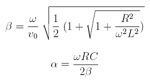 Für die oben stehenden Gleichungen gilt, daß bei hohen Frequenzen die induktive Reaktanz viel größer ist als der ohmsche Widerstand (ωL >> R). Es wird ferner angenommen, daß die Ableitung verschwindend gering ist (G = 0). Es gilt: