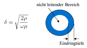 Die mittlere Eindringtiefe des Stromes ist frequenzabhängig:
