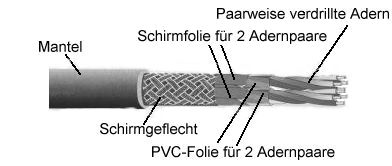 Die Bauart der Kabel hat einen ganz wesentlichen Einfluß auf die Störleistungsunterdrückung und damit die Störsicherheit der Kabel. Während UTP-Kabel eine typische Störteistungsunterdrückung von 40 dB haben, erreichen S/STP-Kabel Werte bis zu 90 dB.