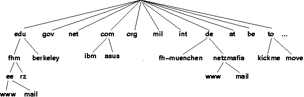 Die Ethernet-Adresse wurde bereits behandelt, auf die anderen beiden Ebenen wird in den folgenden Abschnitten eingegangen. Die Umsetzung der höchsten Ebene (Domain-Namen) in IP-Adressen erfolgt durch das oben erwähnte DNS, worauf die Dienstprogramme der Schichten 5-7 zurückgreifen.