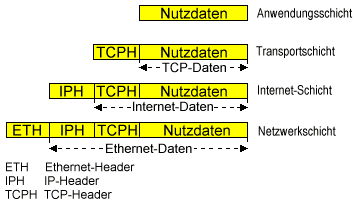 der seinerseits dann z. B. in einem Ethernet-Frame "verpackt"