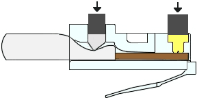 Richtung) und bis zum Anschlag hineingeschoben. Jetzt pressen Sie die Crimpzange