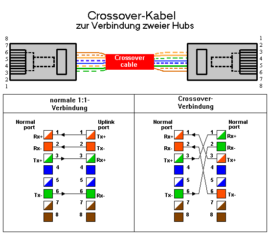 Das Crossover-Kabel wird folgendermaßen verdrahtet: