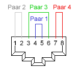 Paar 1 Pins 4, 5 Paar 2 Pins 1, 2 Paar 3 Pins 3, 6 Paar 4 Pins 7, 8