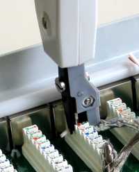 Zur Demonstation wird hier ein Stecker-Patchfeld verwendet, bei einer Dose ist die Vorgehensweise aber dieselbe. Meist sind die entsprechenden Leisten auch farbig markiert oder zumindest beschriftet, so daß man beim Auflegen der Kabel eigentlich nichts falsch machen kann. |