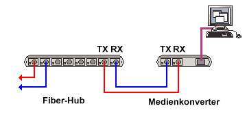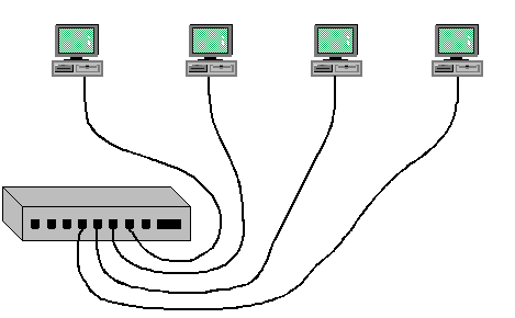 Zum Anschluß mehrerer Stationen müssen sogenannte Hubs (engl. "Hub" = Nabe eines