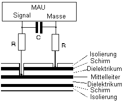 Die nebeneinanderliegenden Leiter und der Rückleiter bilden eine Kapazität