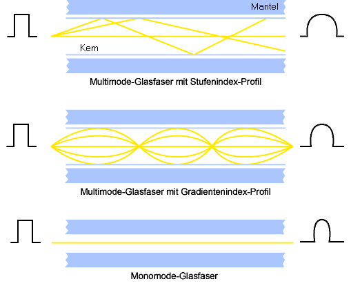Auch der Kabeltyp kann unterschiedlich sein. Vom Koaxkabel über Glasfasern bis zu verdrillten Zweidrahtleitungen ist alles vertreten.