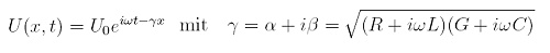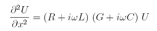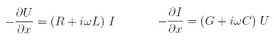 Differenziert man die erste Gleichung nach x und eliminiert man den Term dI/dx bleibt eine Differentialgleichung für die Spannung U(x) übrig, die sogenannte Telegraphengleichung (analog läßt sich das für den Strom erledigen):