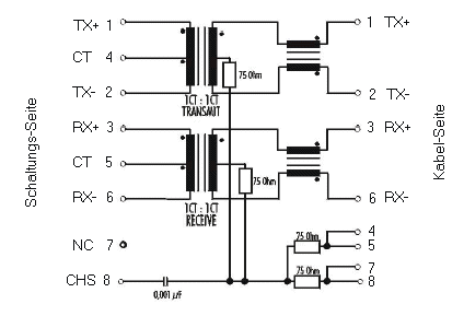 miteinander koppeln. Als Verbinder kommen normalerweise RJ-45-Stecker (Western-Stecker)