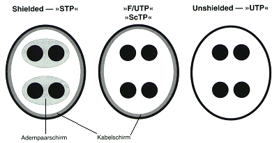 unterschiedlicher Kabelvarianten Einzug in die Datentechnik. UTP, FTP, S/UTP, S/STP oder