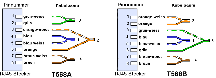 Standard EIA/TIA-T568B-Belegung: