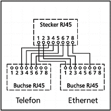 gerät. Normales 100BaseT- und 10BaseT-Kabel kommt mit den Adern an den Pins 1, 2, 3
